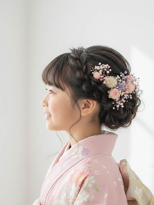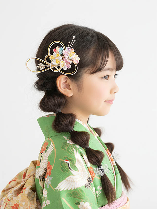 七五三の装いを引き立てるヘアスタイルも、