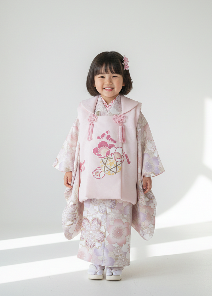 帯を締めた華やかな装いは、成長の喜びを感じる大切な姿です。